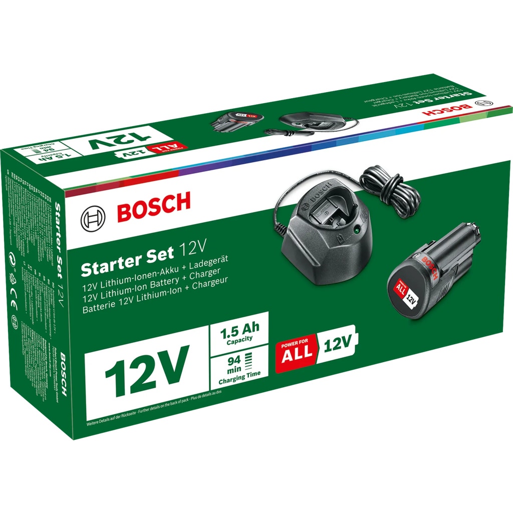 This 12V starter set is suitable for all Bosch Home & Garden tools with 12 V voltage. The set includes a powerful lithium-ion battery with a long running time and a charger with reliable performance.