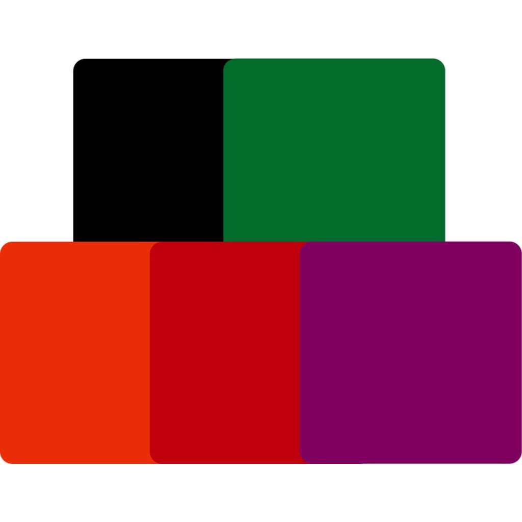 The delivery includes 10 acrylic plates, 2 each per colour (2 x red, 2 x green, 2 x orange, 2 x purple, 2 x black).