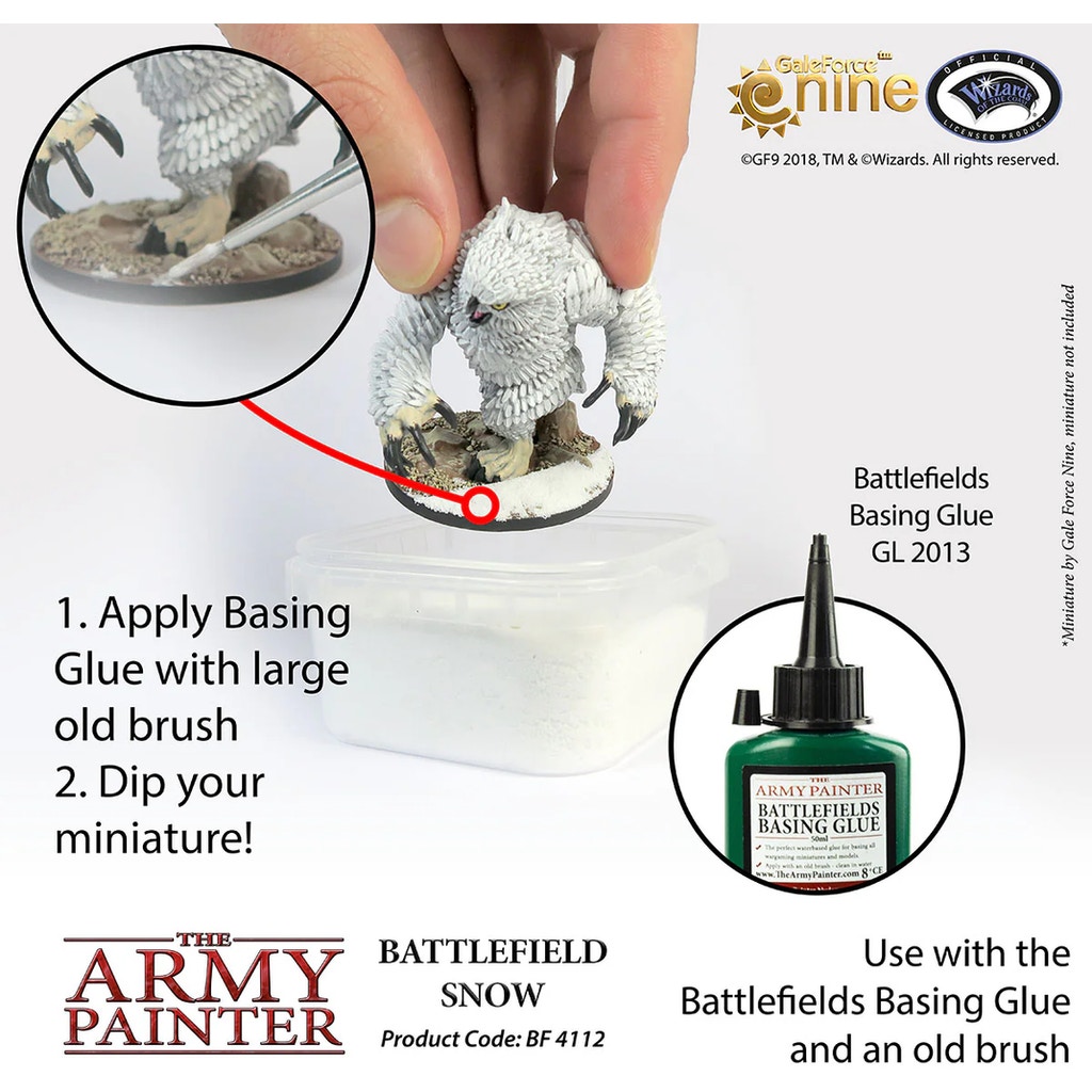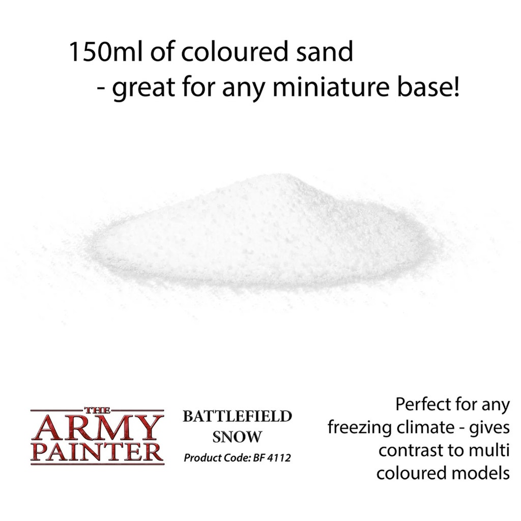 Transform your dioramas into a snowy winter landscape. With Battlefield Basing: Snow from The Army Painter, you can create realistic snow scenes that transport your miniatures to another world. Combine it with other materials such as trees, rocks or buildings to create even more detailed landscapes.