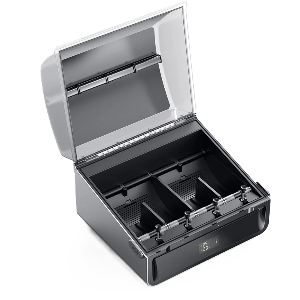 The system loads and unloads the filaments automatically - there is no need for time-consuming manual filament changes. In addition, the well-sealed multicolour device with smart temperature and humidity displays can be used as a filament drying box for keeping and storing the filaments.