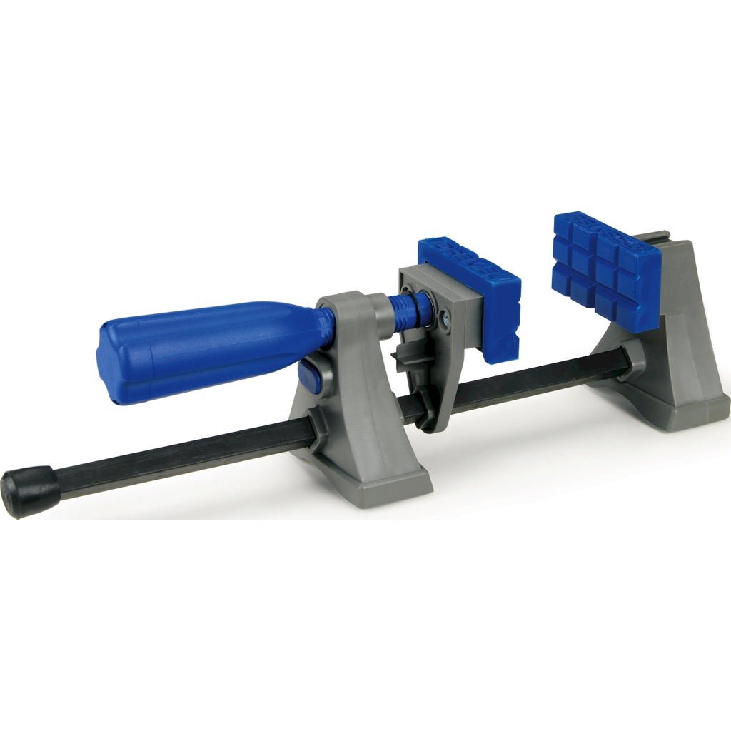 A quick release function on the attachment allows you to quickly release the workpiece you are working on at the touch of a button. This means you can easily inspect your work at any time and clamp the workpiece again if necessary. The clamping jaws on the fastening clamp hold the workpieces in a stable position and allow them to be removed quickly. They are covered with a soft layer of rubber with V-grooves to protect your workbench and tools from scratches and other damage.