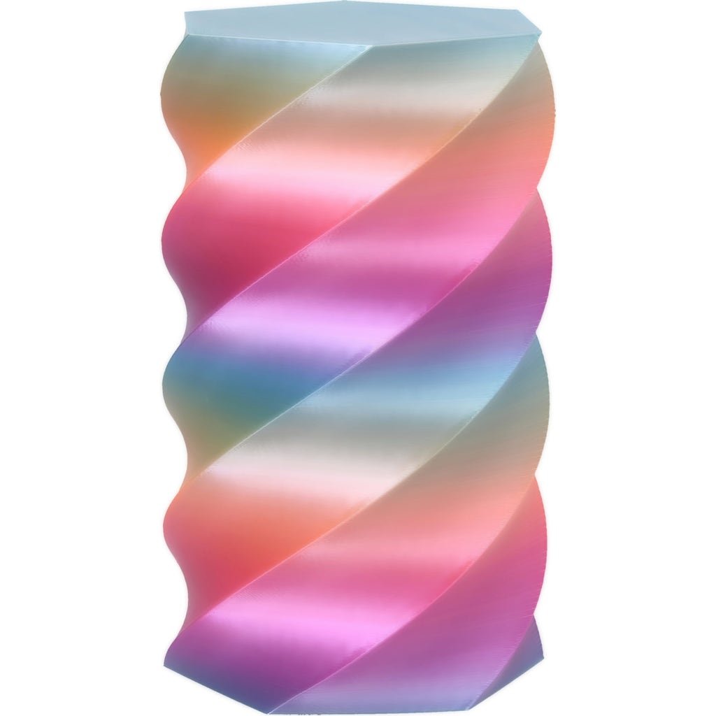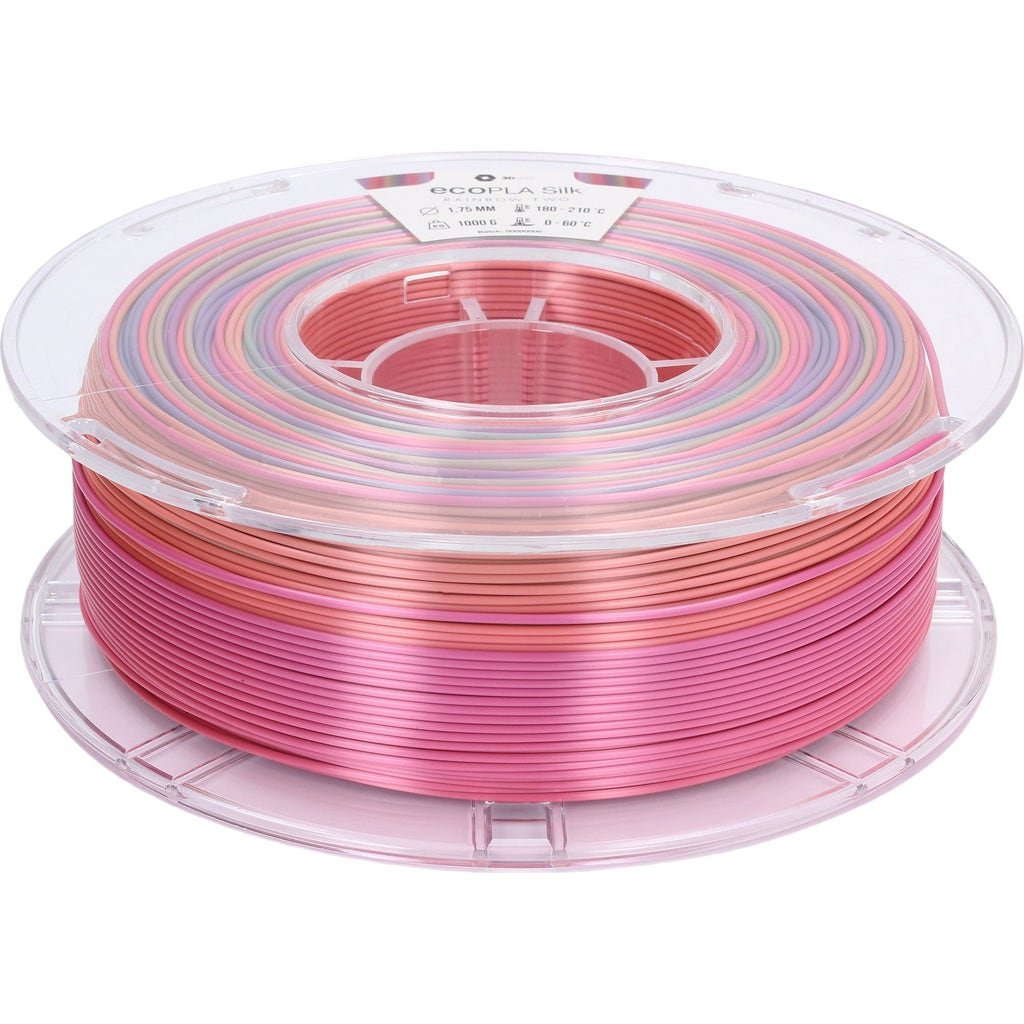 The ecoPLA Silk Rainbow combines a beautiful silky shine with a spectacular colour spectrum. The transitions between the different colours are soft and flowing, creating an elegant fusion of colours. Ideal for colourful models with visual depth.