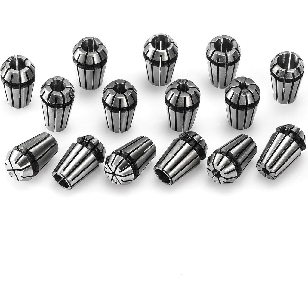 The contents of delivery includes 15 ER11 collets with the following inner diameters:
