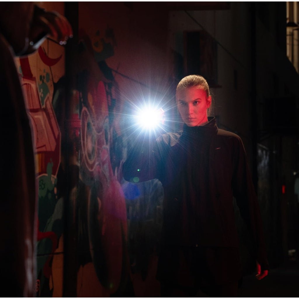 This torch turns night into day! With a range of up to 300 metres, it cuts through any darkness. You can choose between three brightness levels or use the strobe and dot mode when versatility is required.