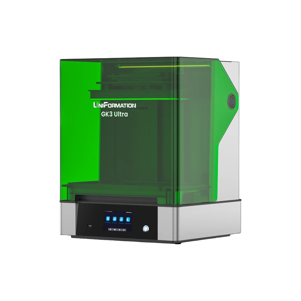 The UniFormation GK3 Ultra is a very exciting new arrival in the world of resin 3D printers. At the heart of the printer is its 16K display which allows the smallest details and structures to be depicted with incredible precision. In addition to the high resolution, GK3 Ultra offers a generous build volume which allows larger models to be printed in a single pass.
