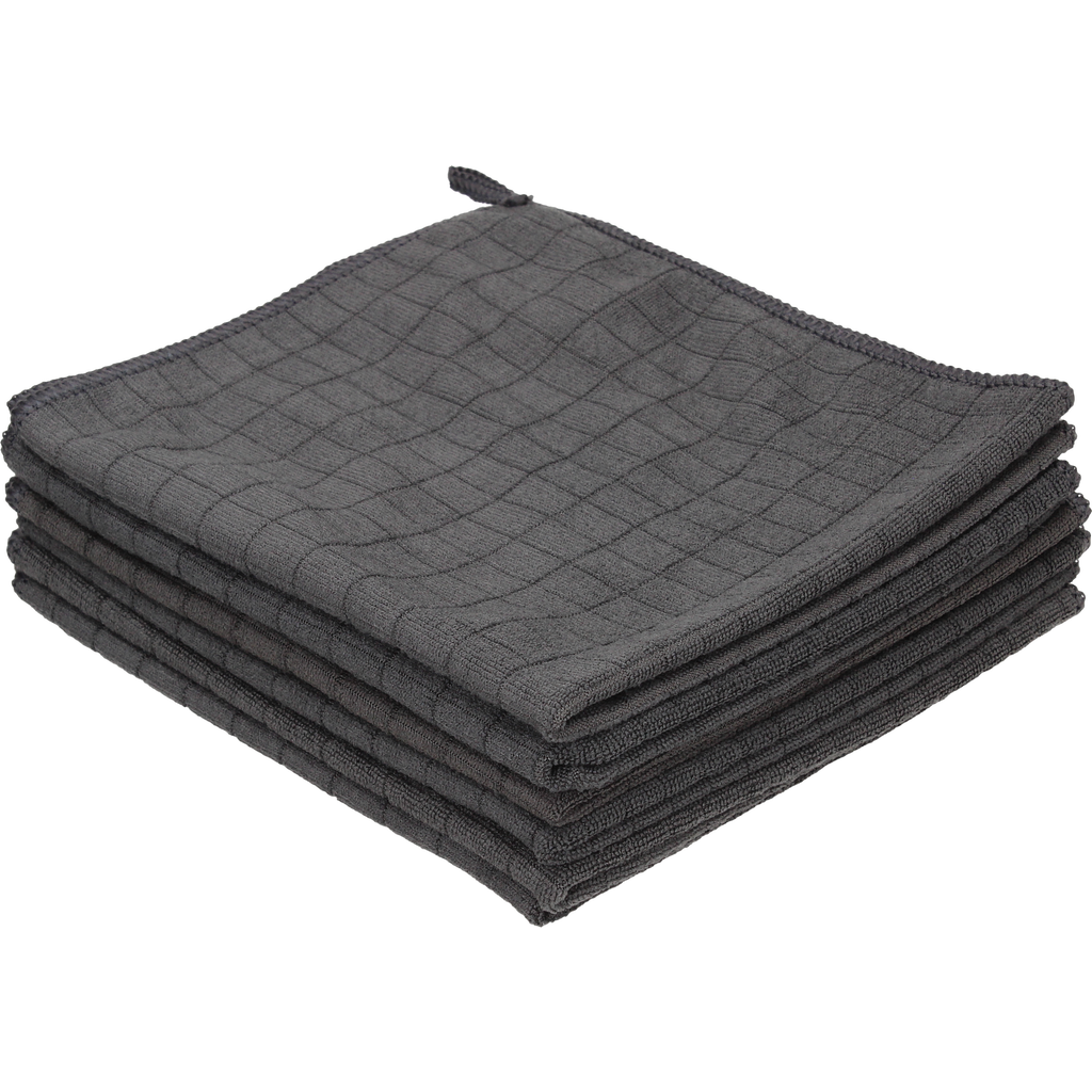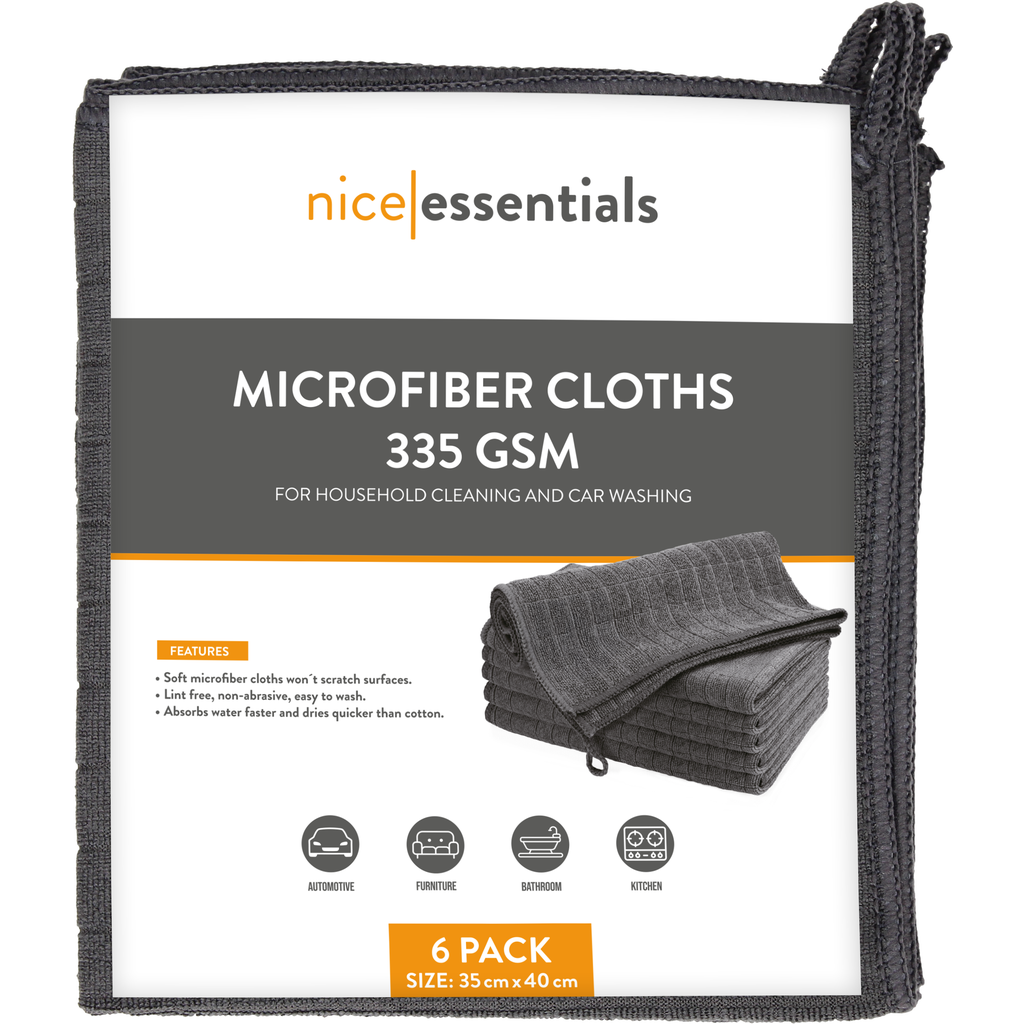The pack includes 6 microfibre cleaning cloths (35 x 40 cm).