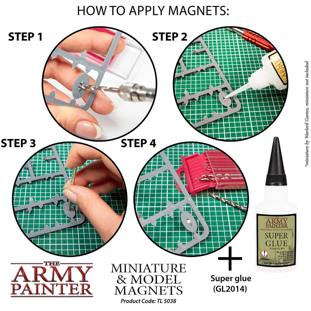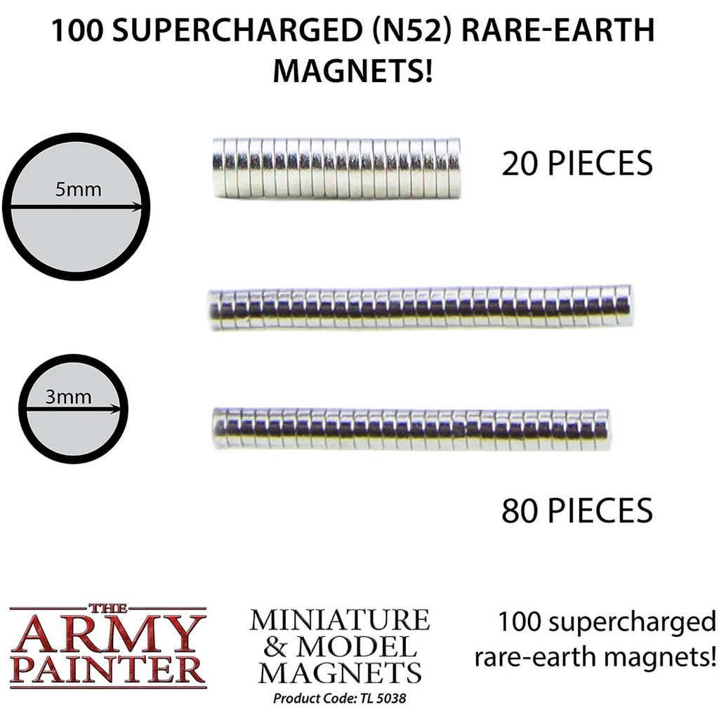 The Army Painter's Miniature and Model Magnets bring a new dimension of customisability to your hobby. These small but powerful magnets are the key to making your miniatures flexible and quickly interchangeable - ideal for magnetised weapon options, modular parts or simply to keep your models securely attached to their base. So you can experiment without glue and customise your army again and again.