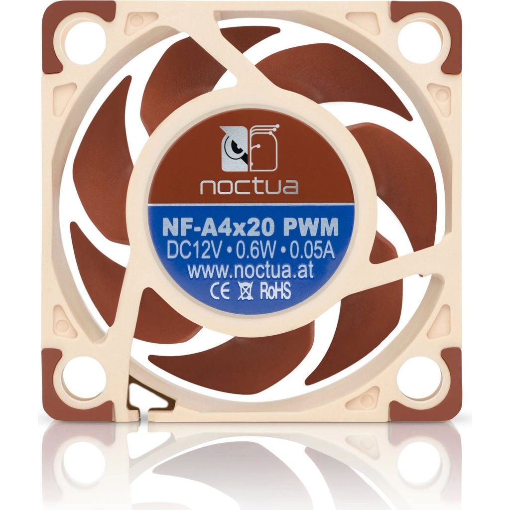 The NF-A4x20 is a highly optimised, quiet fan in premium quality with a size of 40 x 20 mm and offers advanced aerodynamic construction measures such as flow acceleration channels and the AAO frame from Noctua.