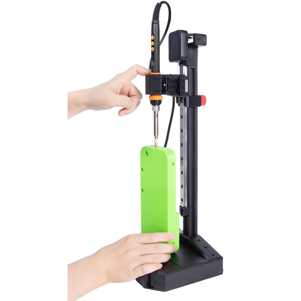 A robust linear rail slider with a working height of 210 mm ensures smooth, vertical guidance of the soldering iron. This enables inserts to be placed with control and precise alignment ¨C even on larger and more complex components.
