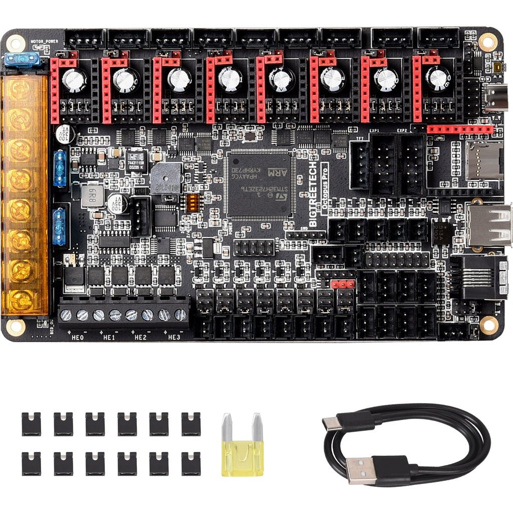 BIGTREETECH Octopus Pro uses a 32-bit ARM Cortex-M4 series chip with a core frequency of 168 or 180 MHz, providing enough power to realise even the most demanding applications and ideas.