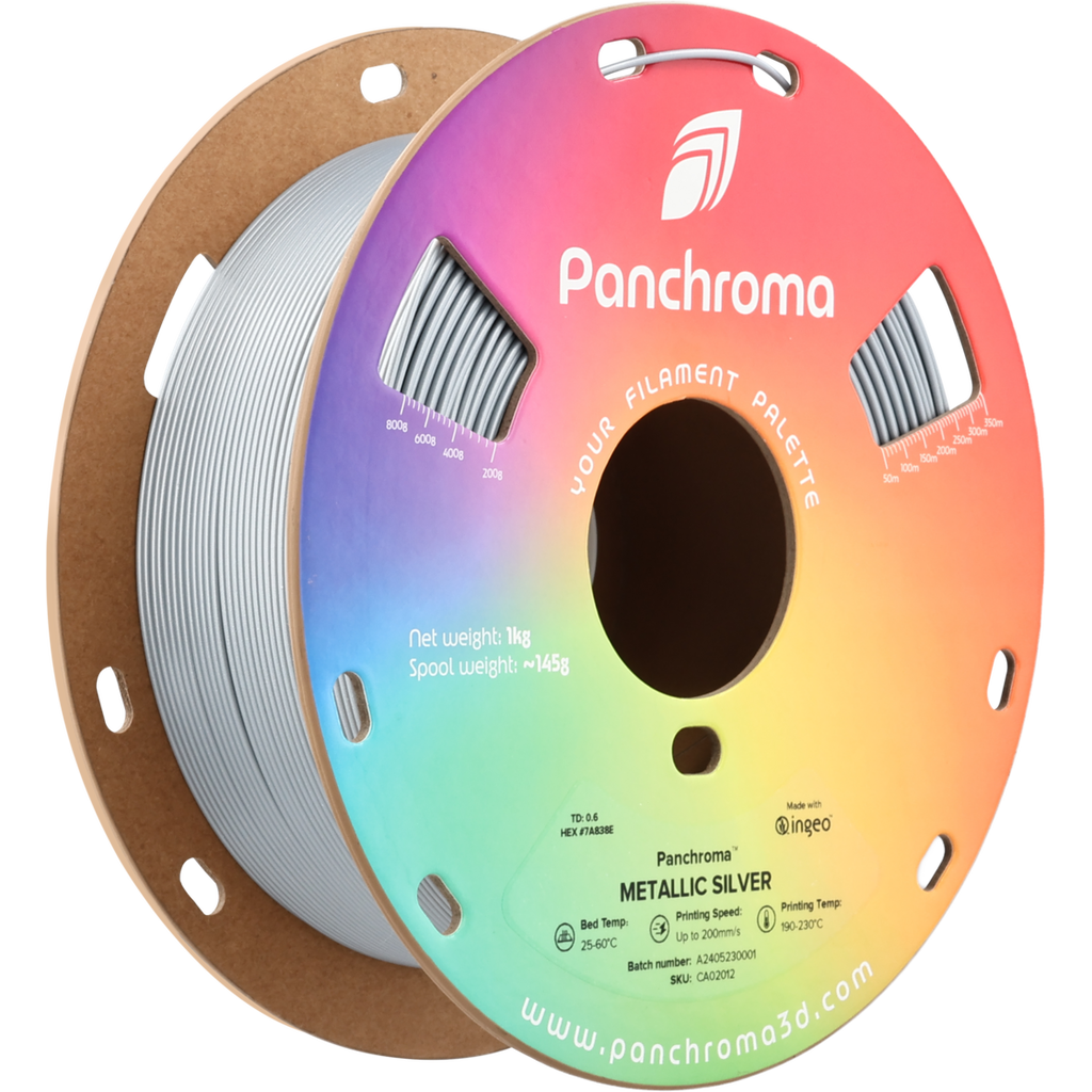 Discover the shine of Panchroma™ PLA Metallic by Polymaker - the filament that adds a luxurious metallic shine to your 3D prints! This high-quality PLA formulation contains special glitter particles that mimic the unique shimmer of metal and add impressive elegance to any project.