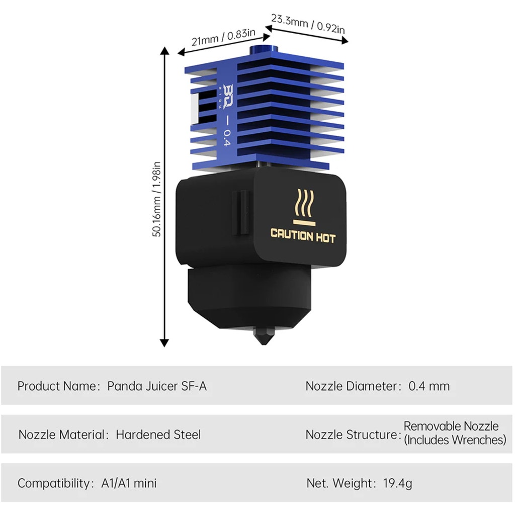 Get maximum performance from your Bambu Lab A1 or A1 mini: the BIQU Panda Juicer SF-A Hotend is precisely engineered for these models, ensuring clean and reliable extrusion every time.