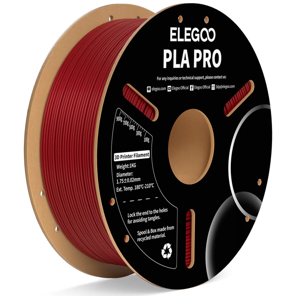 Elegoo PLA Pro is an easy-to-print PLA filament that has much better rigidity and stiffness compared to a standard PLA. The material can withstand higher temperatures without losing its mechanical properties which makes it suitable for high-speed applications.