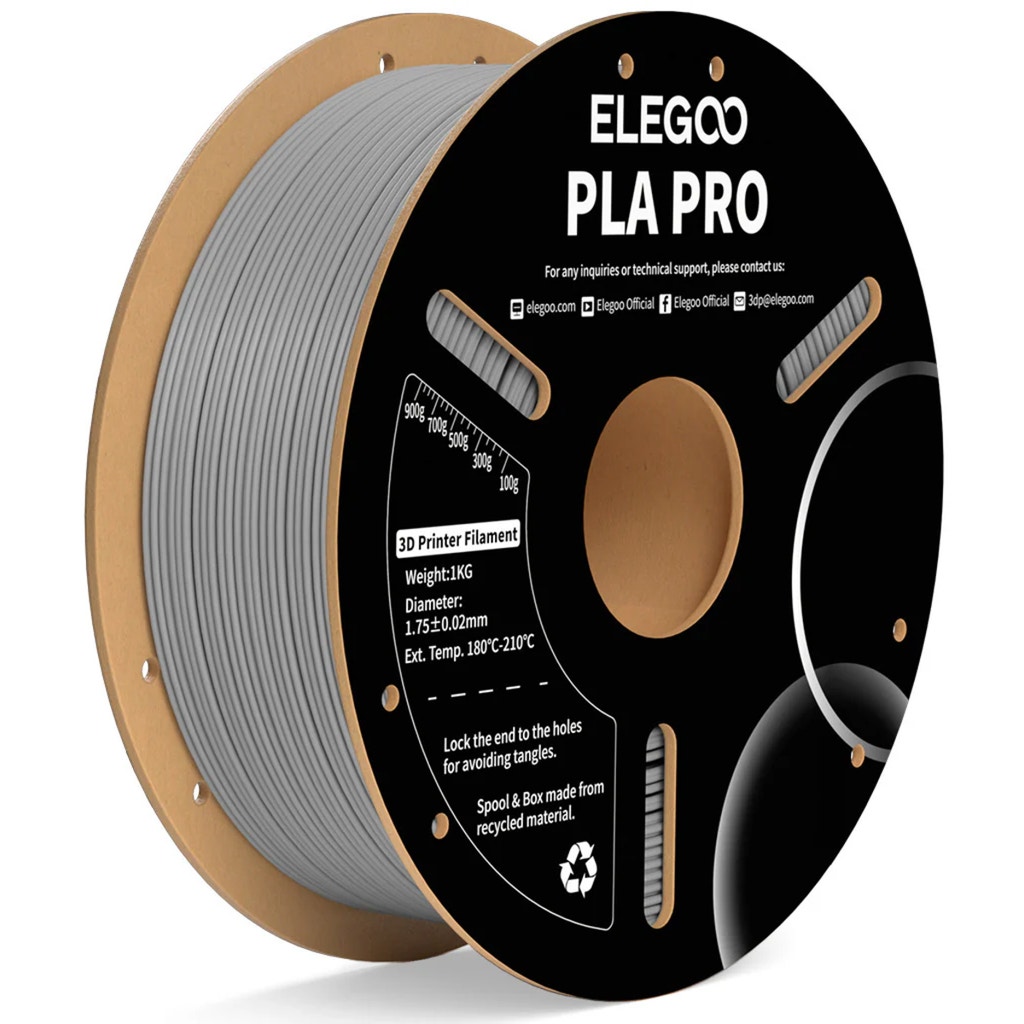 Elegoo PLA Pro is an easy-to-print PLA filament that has much better rigidity and stiffness compared to a standard PLA. The material can withstand higher temperatures without losing its mechanical properties which makes it suitable for high-speed applications.