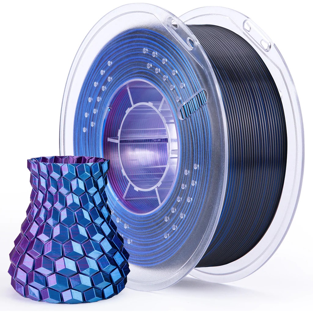 Multi-coloured PLA filament with a silky finish in Blue Purple Black