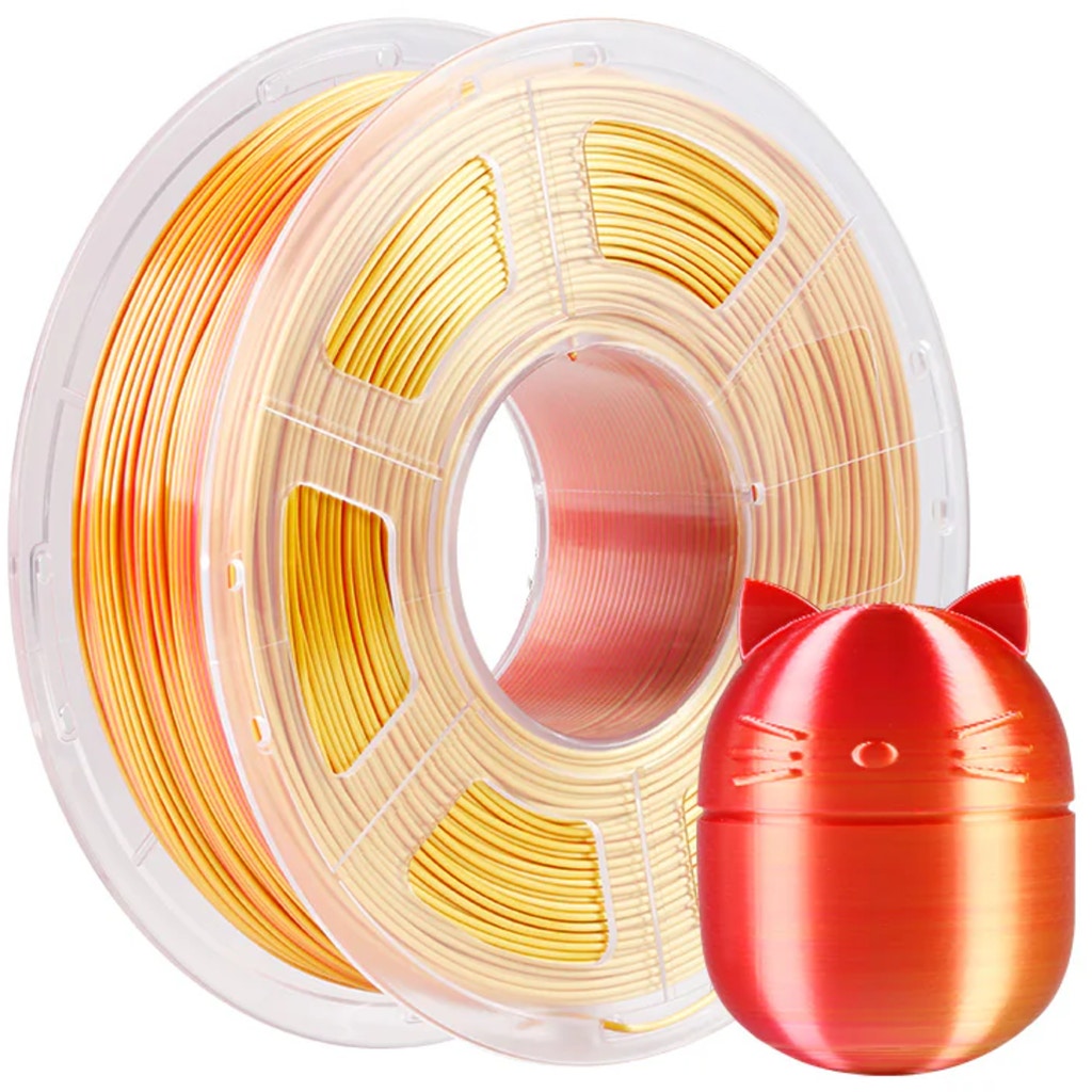 Anycubic PLA Silk Dual-Color turns every print into a showpiece. Using an innovative dual-extrusion process, this filament blends two rich colours into a smooth gradient ¨C delivering models with a silky finish and an eye-catching shimmer from every angle. Whether it's a figure, vase, or decorative object, your prints will stand out with vibrant colours and a seamless, glossy surface.