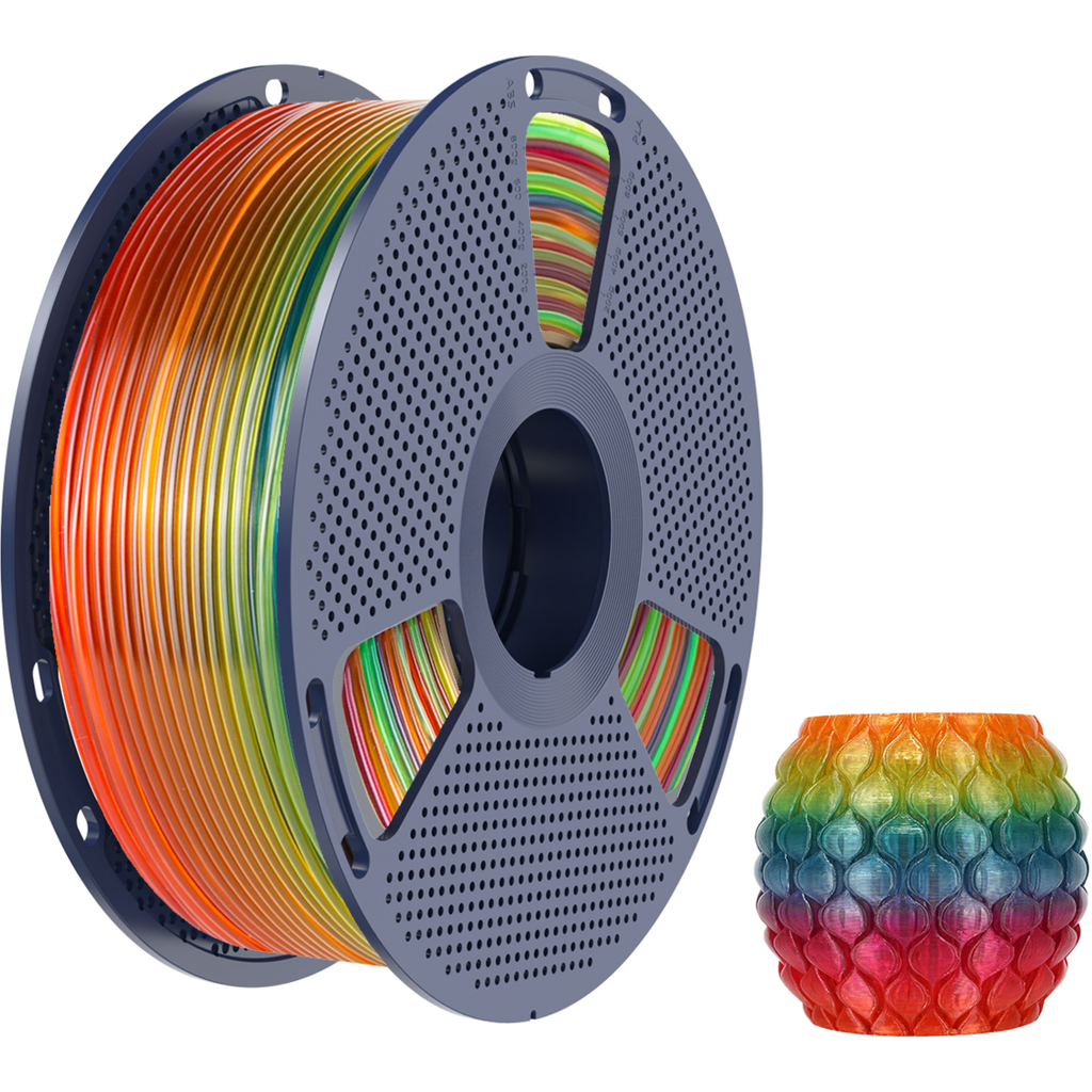 SUNLU PLA Transparent Rainbow adds striking visual effects to your 3D printed models! Featuring a unique 8-m colour gradient, this filament creates seamless rainbow coloured transitions from bottom to top, turning every 3D print into an eye-catching object.