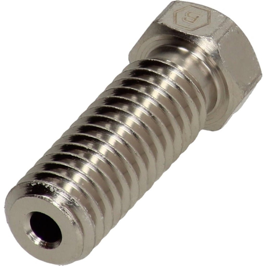 The plated copper nozzles combine the excellent heat conduction of copper and are also extremely resistant thanks to the nickel coating. This means that two of the most important properties are combined in one nozzle, making it possible to print abrasive filaments at high speed.