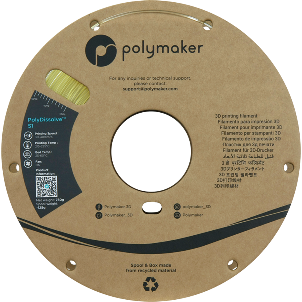PolyDissolve ? S1 is a water-soluble support material for filaments based on PLA, TPU, PVB and nylon. It has been specially designed to have a perfect interface with these materials while providing good solubility.