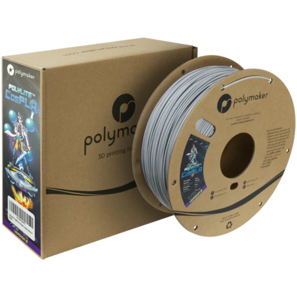 PolyLite? CosPLA from Polymaker is a PLA filament specifically developed for cosplay applications. Compared to a commercially available PLA, the material has better durability and is easier to sand and paint.