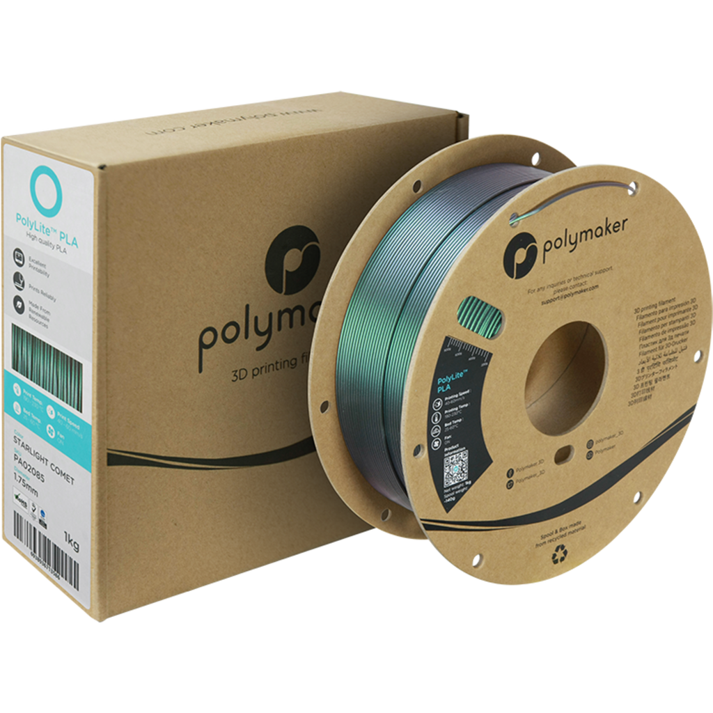 Inspired by the natural colours of the universe, the PolyLite PLA Starlight changes colour depending on the viewing angle and light, creating a mesmerising and hypnotic effect. Create galactic works of art with dazzling colours and let them dance in harmony with beautiful light reflections.