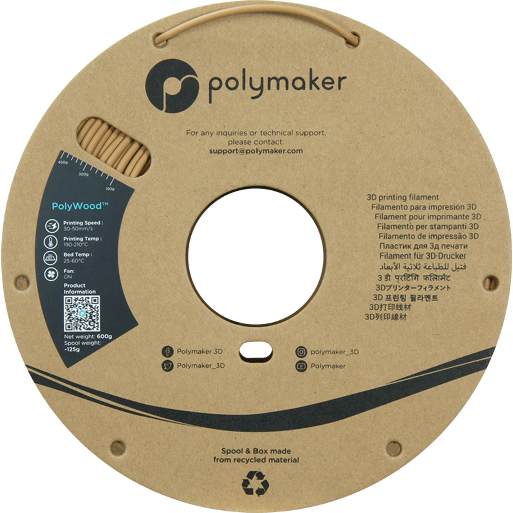 All previous wood filaments are based on wood-polymer composites, that is a mixture of polymer and chopped wood powder. Polymaker has a completely different approach. Instead of imitating wood with wood, Polymaker invented a unique foaming technology that structurally mimics the wood. Polywood ? is completely made of plastic. This gives you the best printing results without the risk of nozzle clogging.