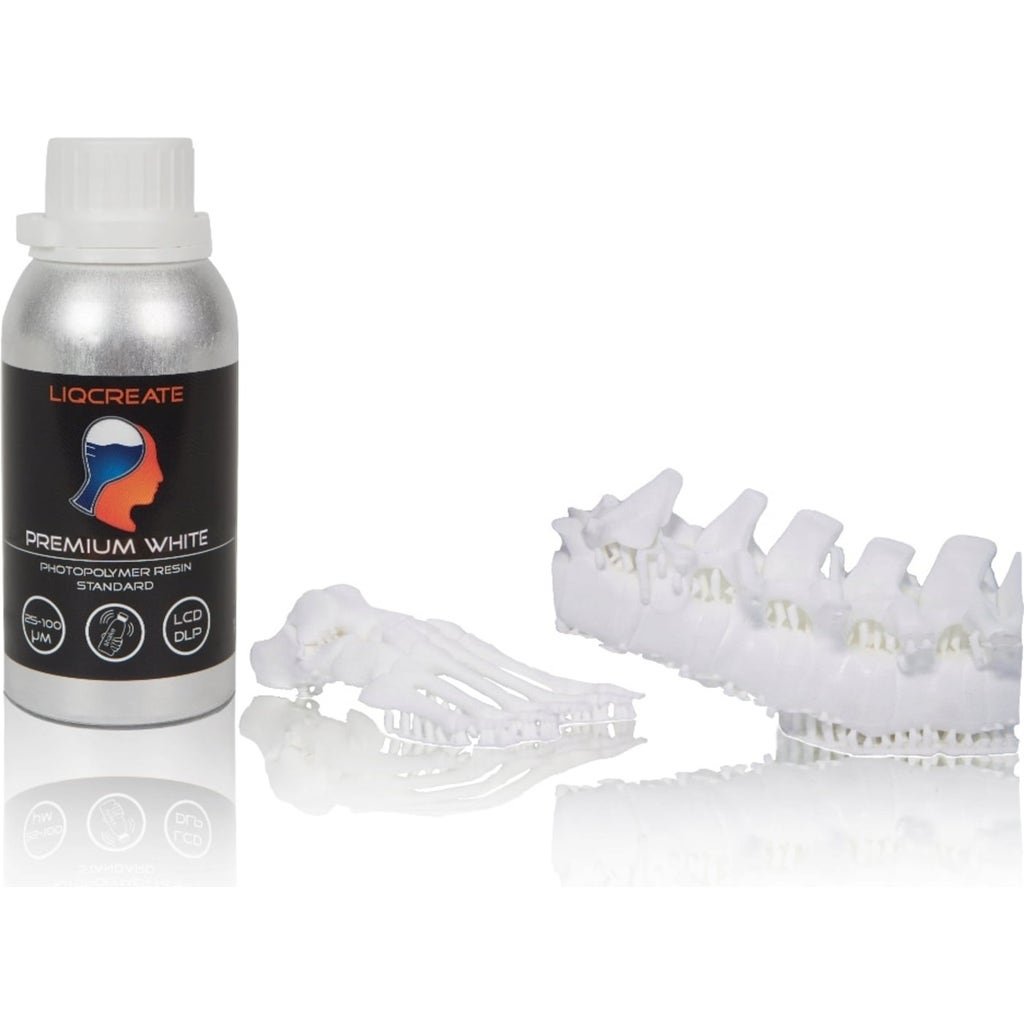 Liqcreate Premium White is an opaque white photopolymer with excellent UV stability, ideal for medical and architectural models. Printed parts do not discolour and remain white even after prolonged exposure to UV radiation.
