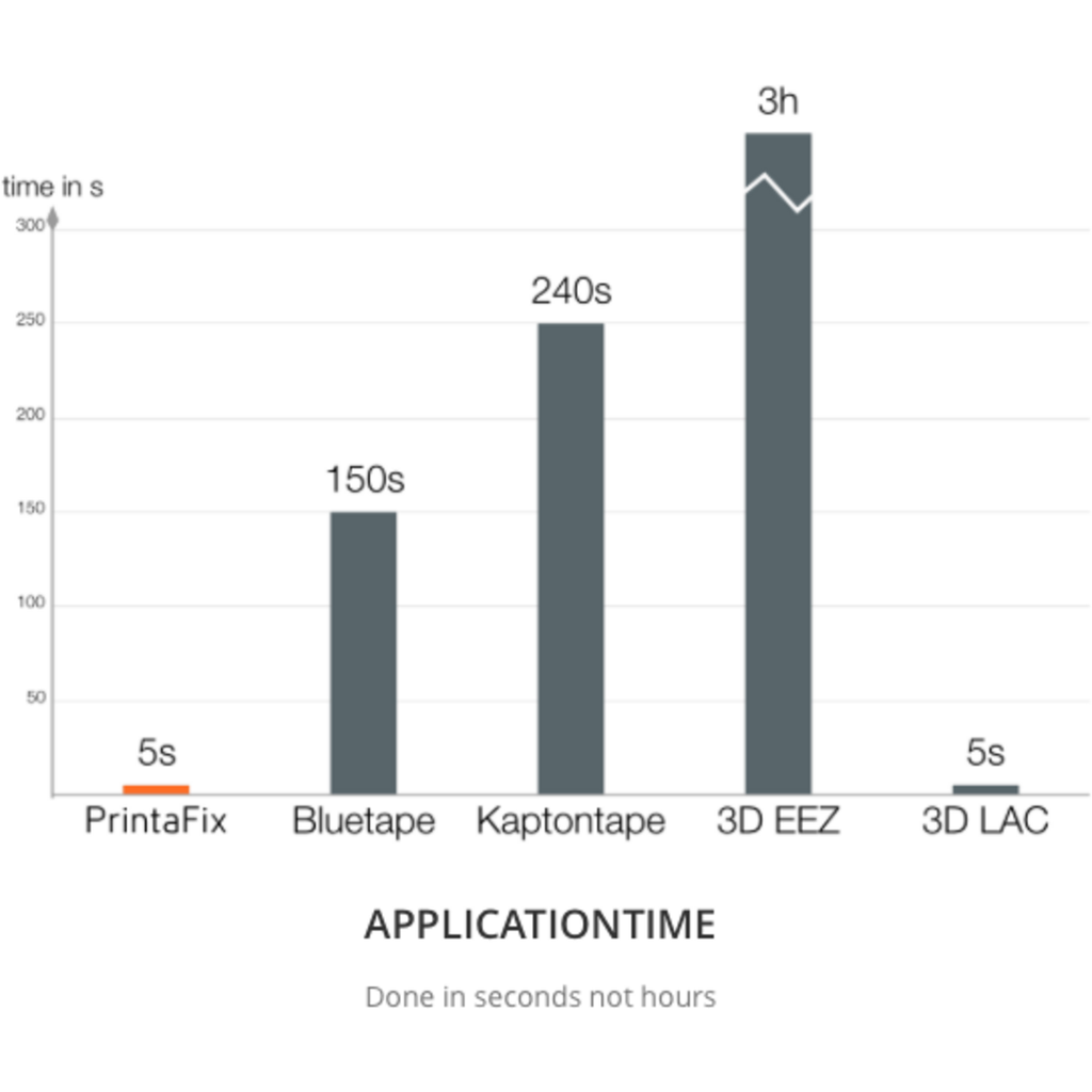 With PrintaFix, you no longer need BlueTape or similar adhesives. Due to the simple application and the superb adhesion qualities, PrintaFix stands out.