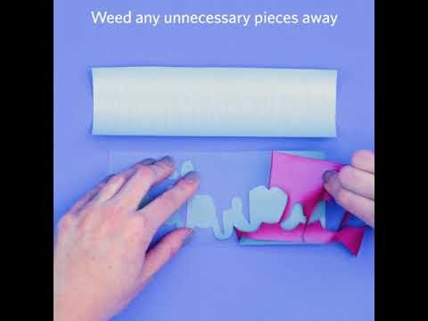 The special film material has an adhesive backing that activates when heated and bonds permanently to fabrics. The material can be loaded directly into a cutting machine. A cutting mat is not required.