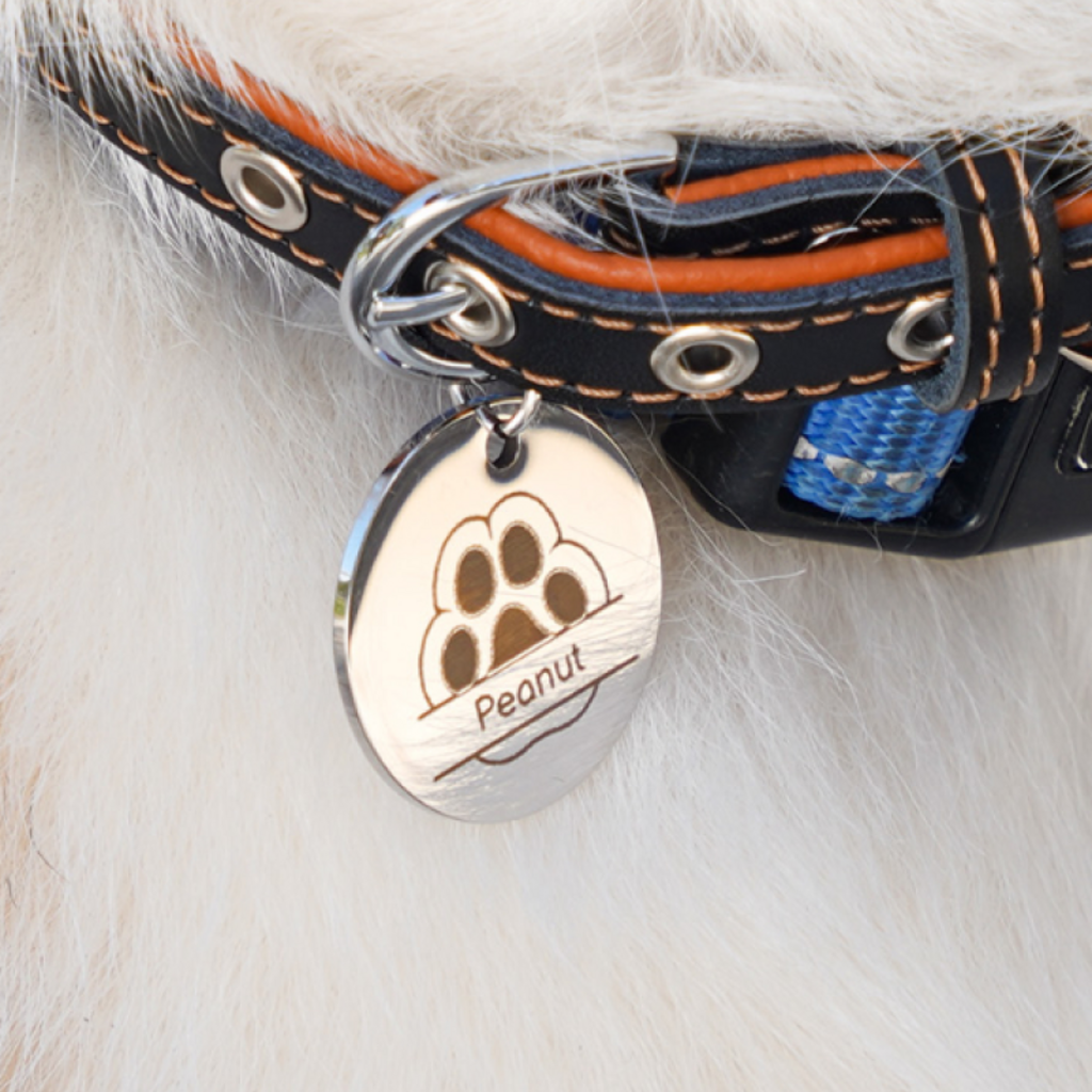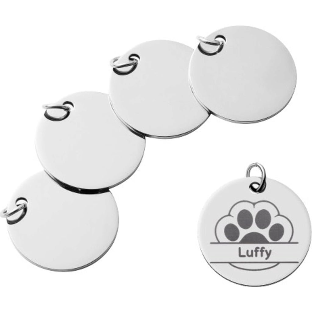 The delivery includes 5 Round Stainless Steel Tags (small: ?20 mm, large: ?30 mm).