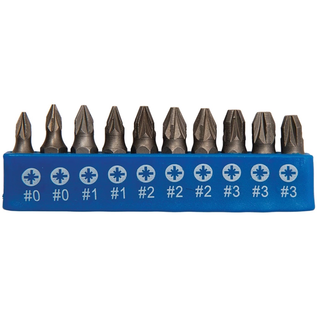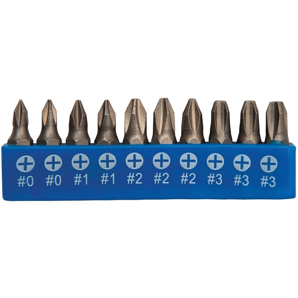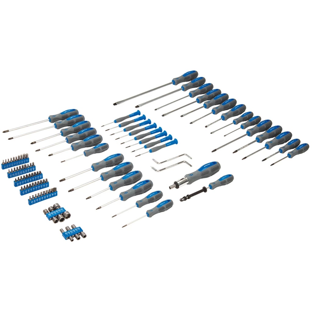 - 50 x screwdrivers (10 x slotted, 10 x Pozidriv, 10 x Phillips, 7 x Trx, 3 x square and 10 x hexagon)