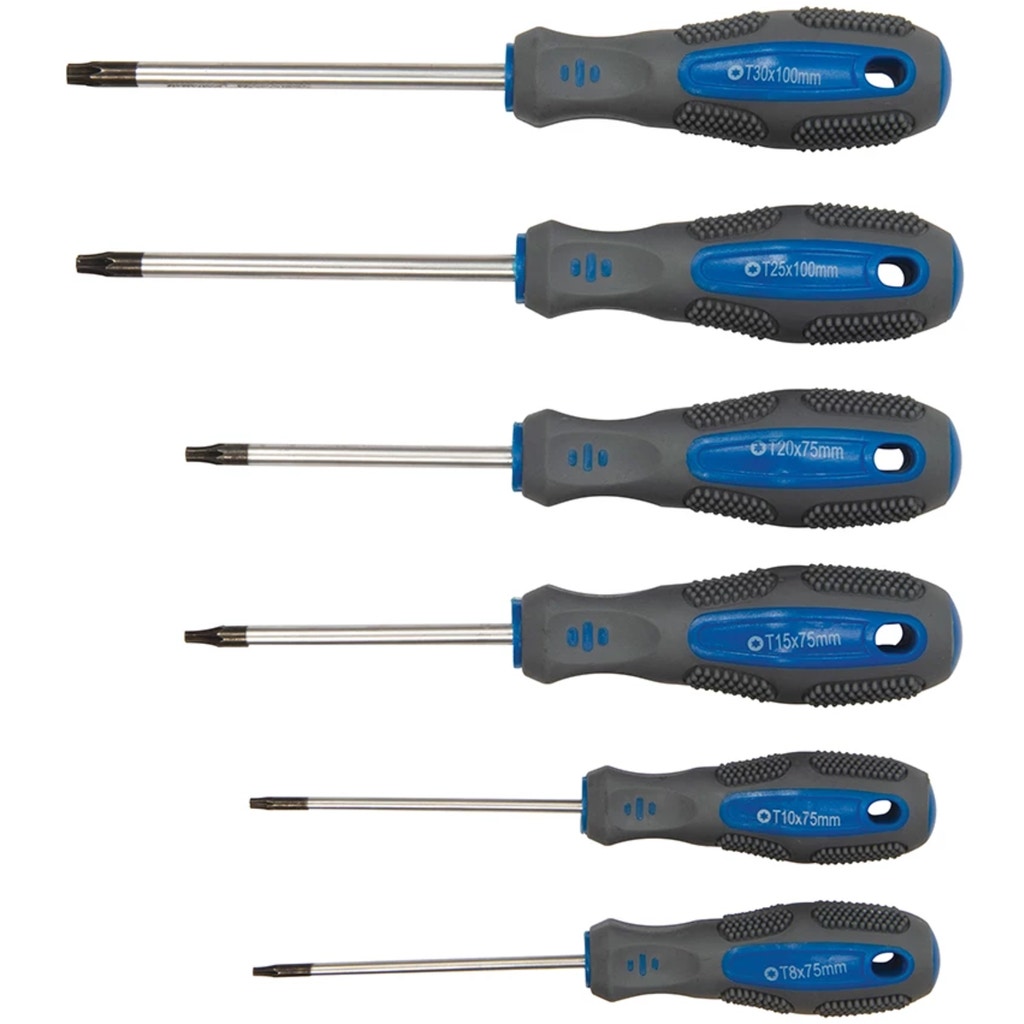 - 6 x Trx screwdrivers (T8x75, T10x75, T15x75, T20x75, T25x100, T30x100 mm)