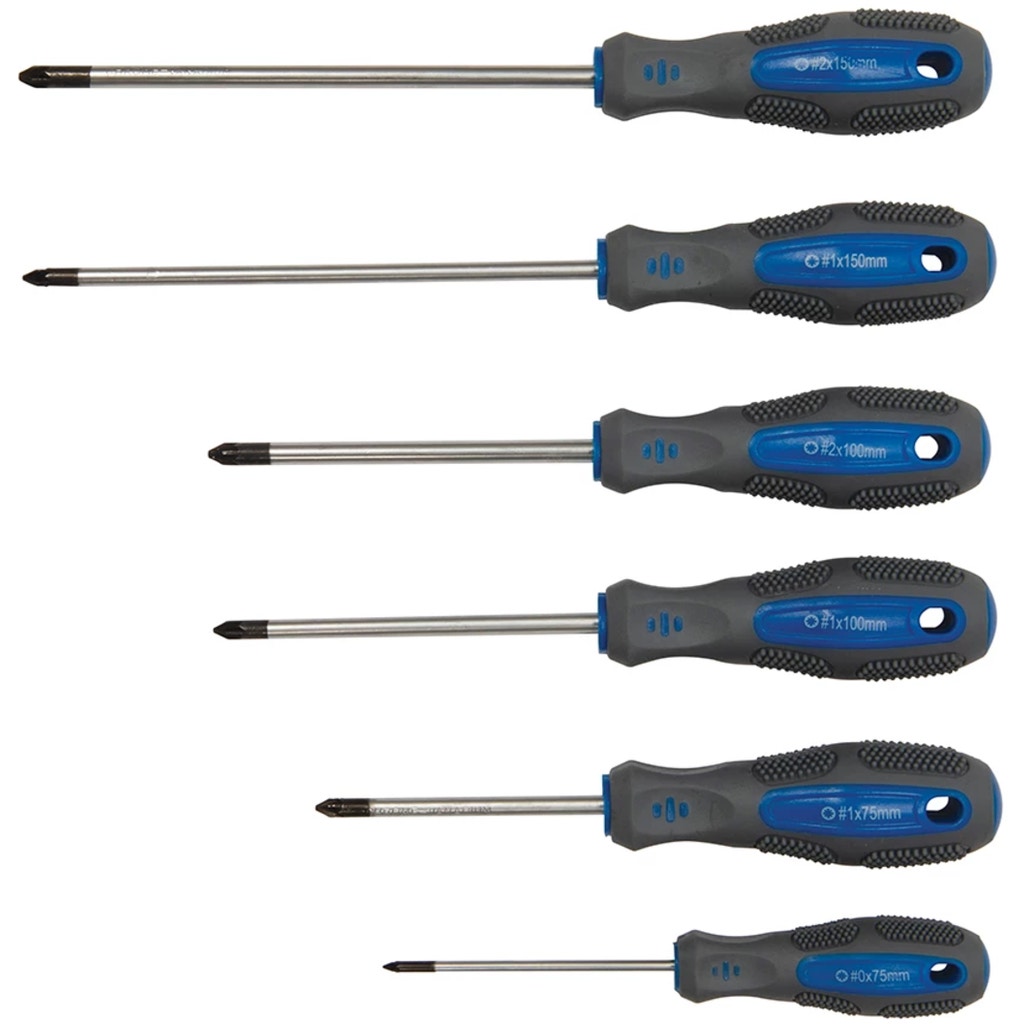 - 6 x Pozidriv screwdrivers (PZ0x75, PZ1x75, PZ1x100, PZ1x150, PZ2x100, PZ2x150 mm)