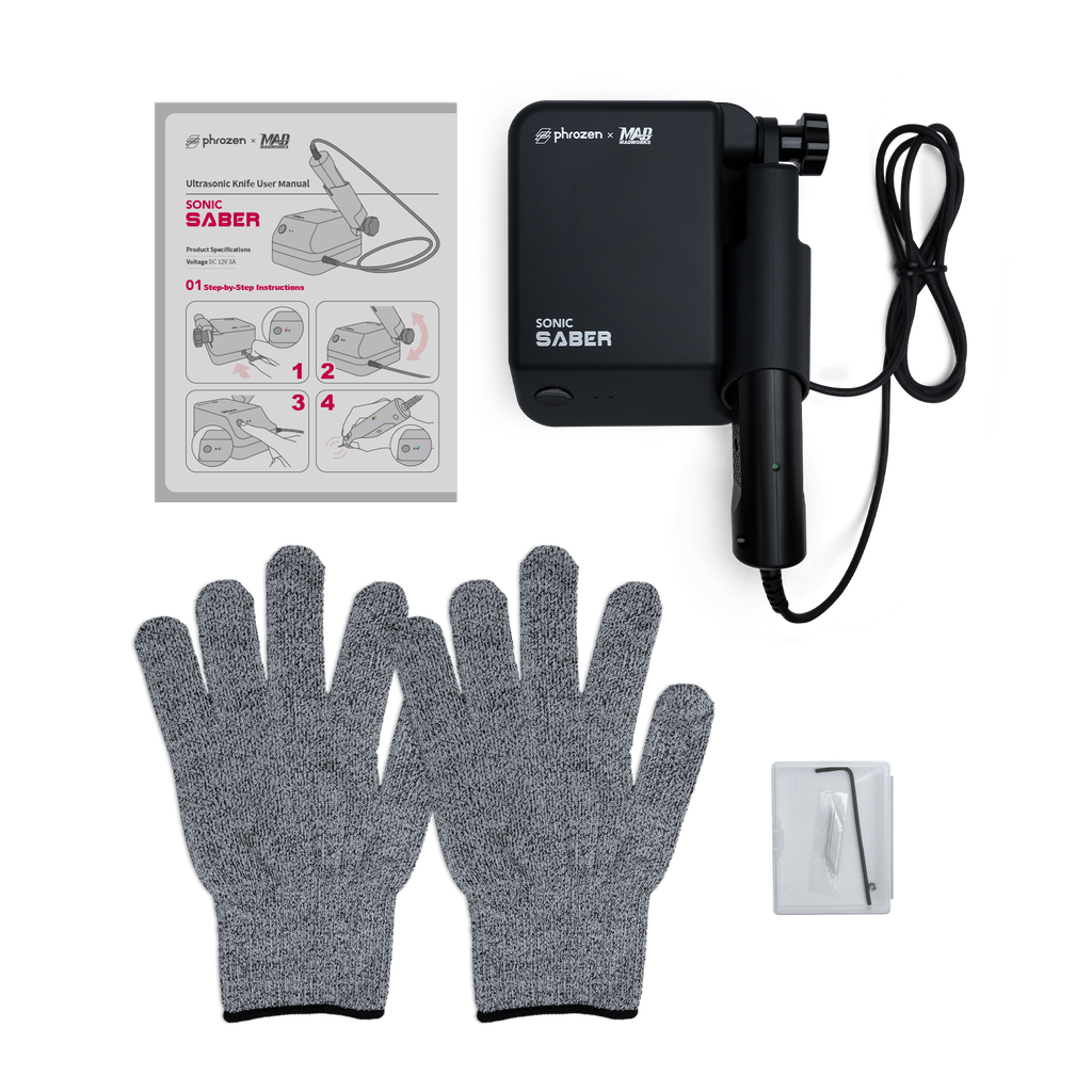 Phrozen's Sonic Saber is an ultrasonic cutter that cleans and precisely removes any support structures with 35,000 blade vibrations per second in no time at all. The sharp corners and unwanted edges are easily trimmed, allowing every single detail of the model to shine. With the cutter, accidental mistakes can be easily corrected, and individual areas can even be improved afterwards: the pointed blade even reaches the very deep and inaccessible areas. With the Sonic Saber you can be creative with different materials: The cutter cuts from 0.01 to 0.1 cm thicknesses.