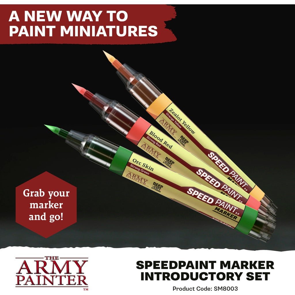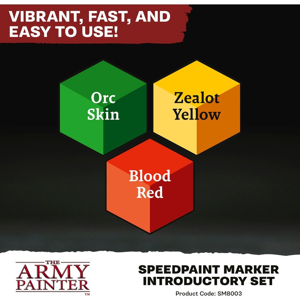 This Introductory Set includes three ultra-strong colours: Orc Skin, Zealot Yellow and Blood Red. Just what you need to paint your first figures or give your colour scheme a fresh look. And best of all, the marker set is easy to carry, so you can take your hobby with you wherever you go!