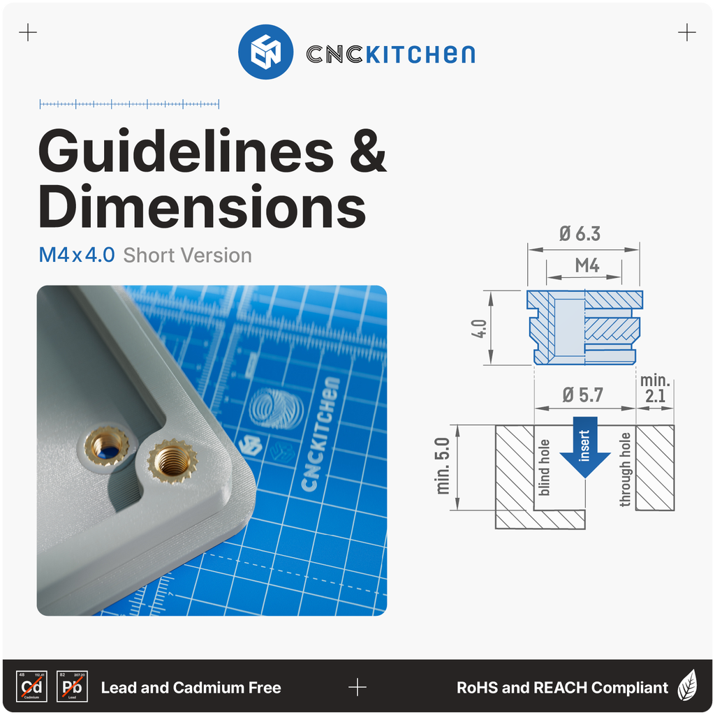 Threaded Inserts M4 Short, M4 x 4.0 (50 pcs)