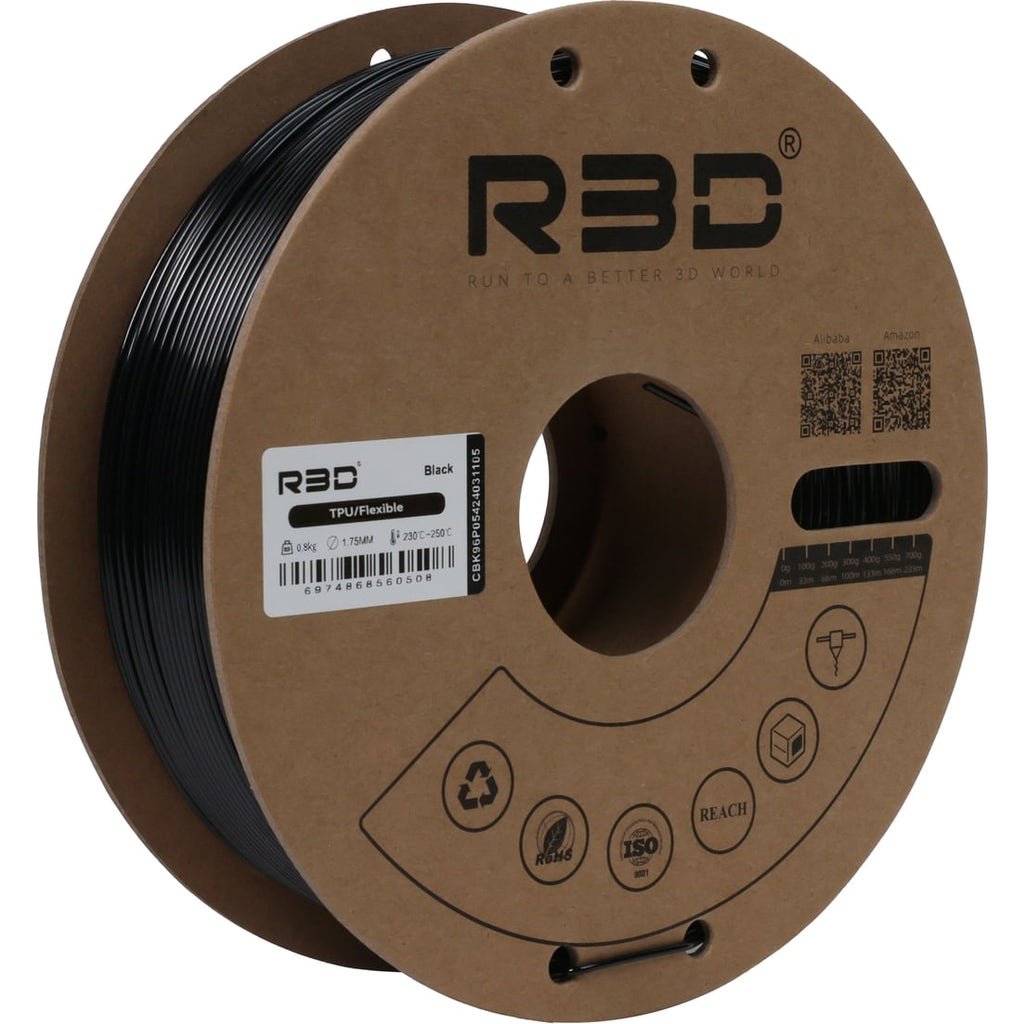 R3D TPU (Thermoplastic Polyurethane) is a flexible, abrasion-resistant 3D printing filament that has great resistance and elasticity. It is used by both private consumers and the industry.