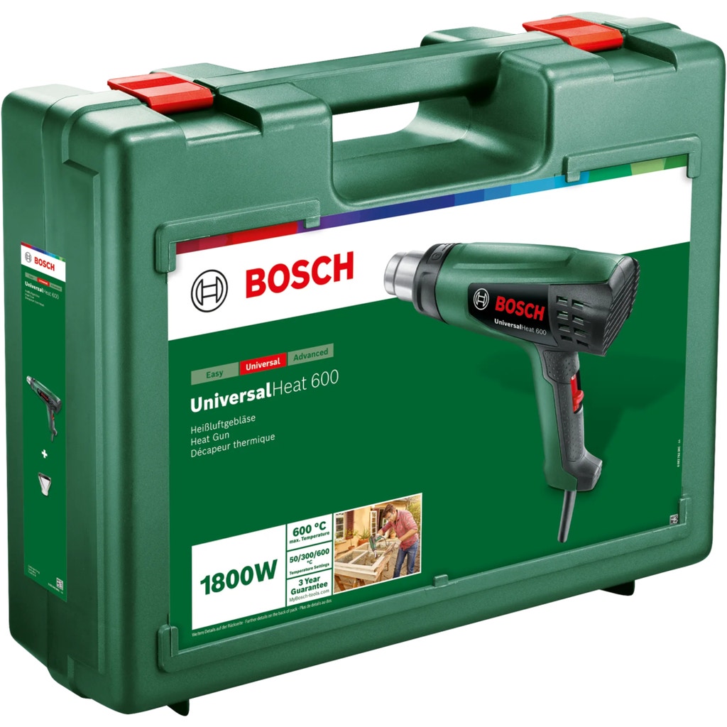 The UniversalHeat 600 hot air blower from Bosch impresses with its flexible application and easy handling. A powerful heating element ensures that the device heats up quickly in the shortest possible time, and the even heat distribution guarantees optimal results every time it is used.