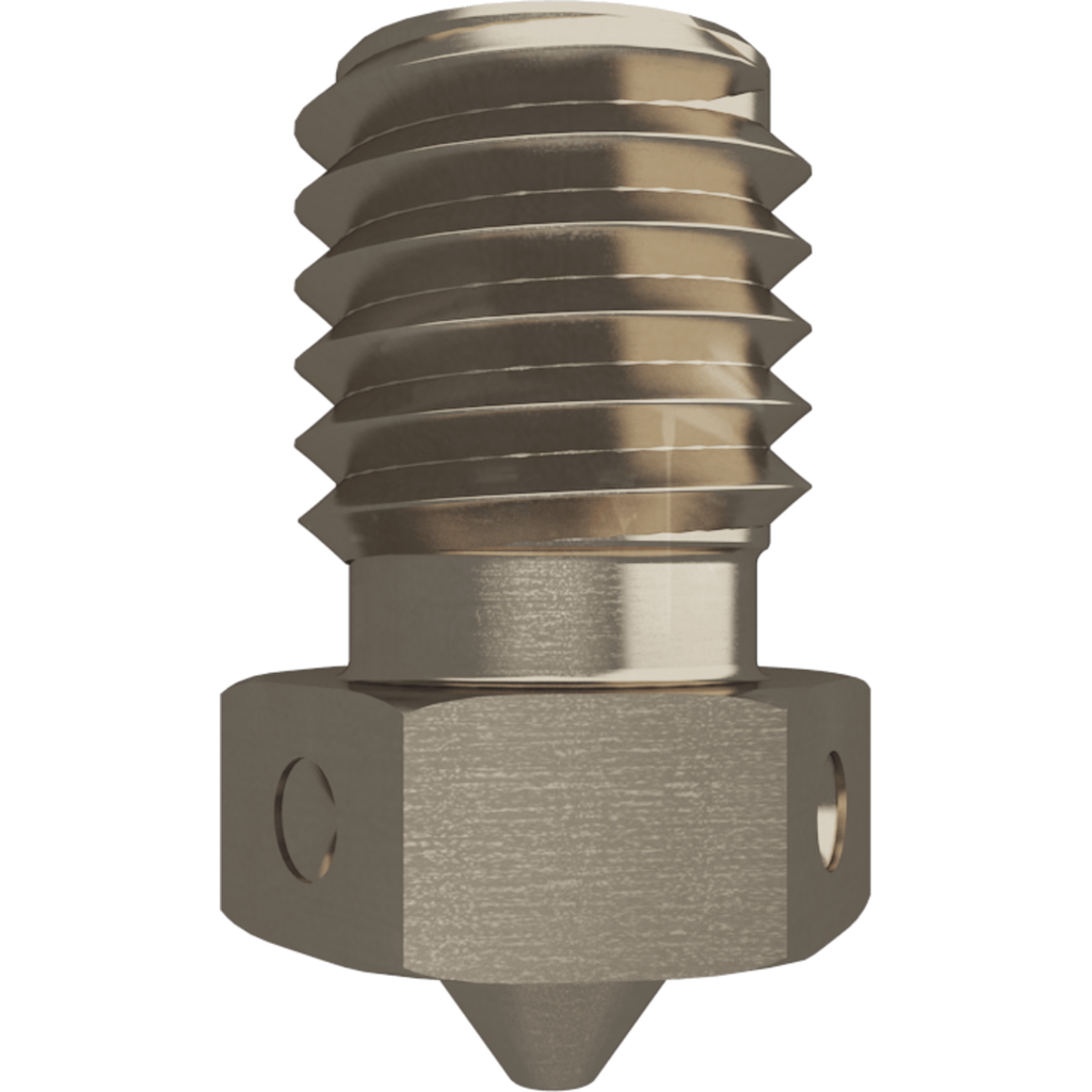 In addition to high temperature performance, these nozzles have an advanced nickel-based coating that significantly reduces the adhesion of plastic to the nozzle. This is ideal for everyday filaments to keep the nozzles clean and shiny, but is especially important at temperatures above 300°C where a silicone sock cannot be used.