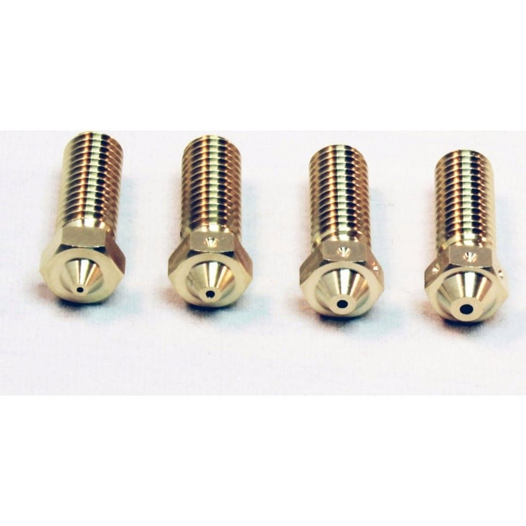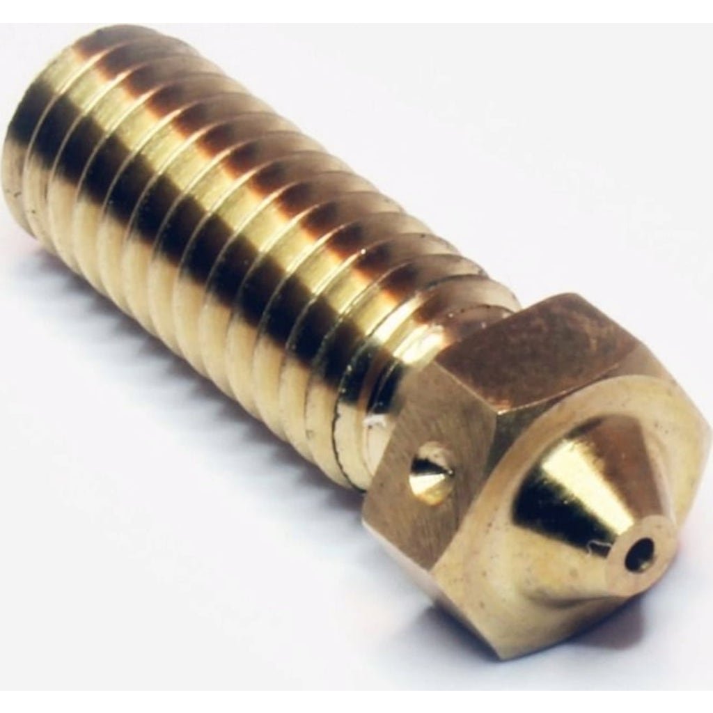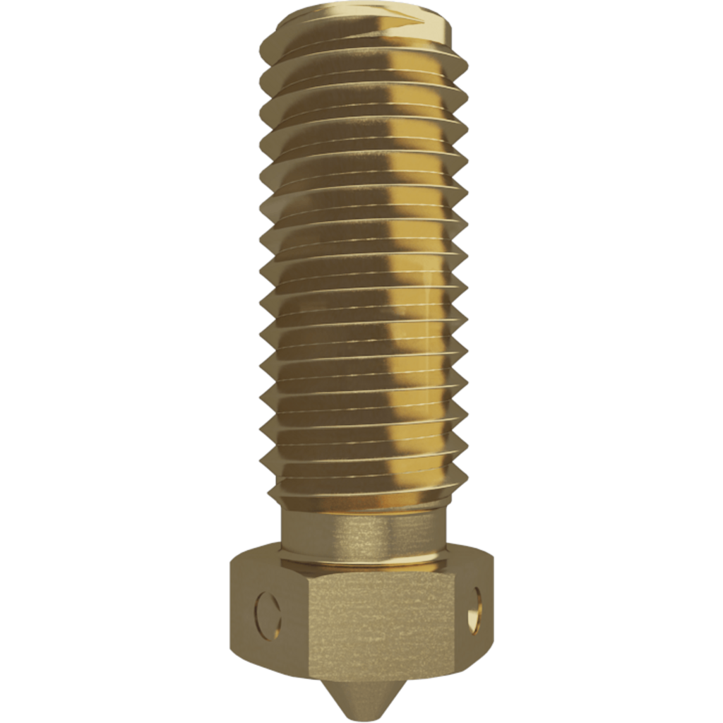 Volcano nozzles are super-fast printing nozzles for use with the Volcano block and packs for printing large layer heights at extremely high flow rates. Volcanic nozzles have extra long heated melting zones for ultimate melting speeds. The internal geometry has been carefully designed to optimise flow and throughput and to ensure that the nozzle tip is the correct size to flatten particularly wide print marks.
