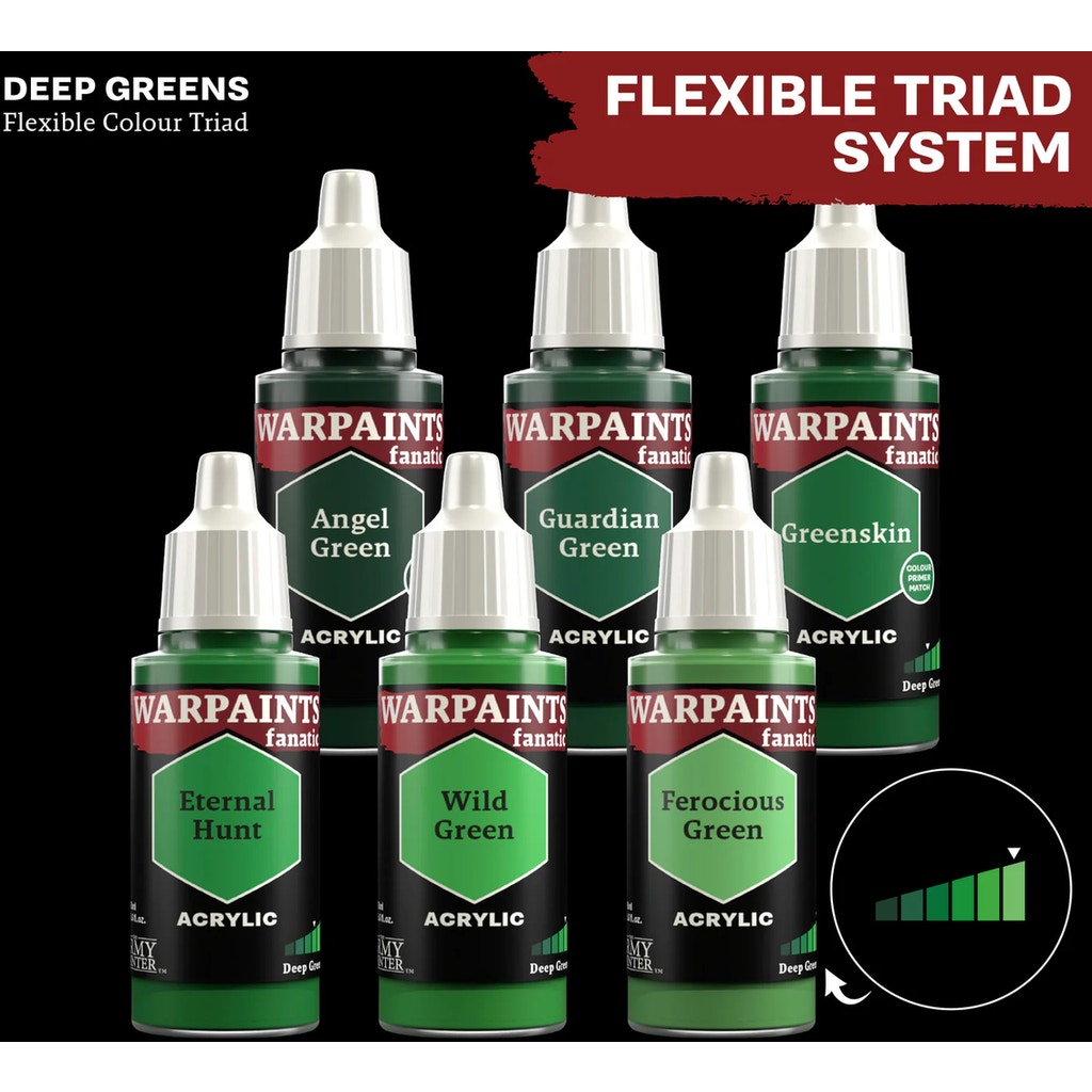 Discover the deep, rich tones of nature with the Warpaints Fanatic: Deep Greens from The Army Painter. These exquisite colour shades bring the different facets of green directly to your miniatures - from dense, moss-covered forests to the deep shadows of nature, giving your miniature worlds an impressive depth.