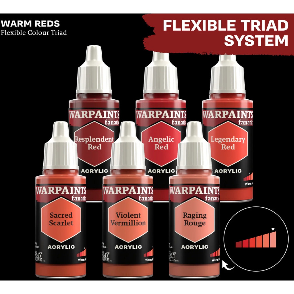 With the Warpaints Fanatic: Warm Reds from The Army Painter, you can bring fiery passion and deep emotions to your miniatures! These rich, warm red colours are perfect for creating powerful highlights, dynamic details and energetic accents. Whether glowing magic, shining armour or the bold colours of majestic coats of arms - these red tones give your miniature worlds an unmistakable intensity.
